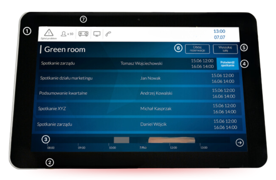 Funkcje ekranu z systemu rezerwacji salek konferencyjnych